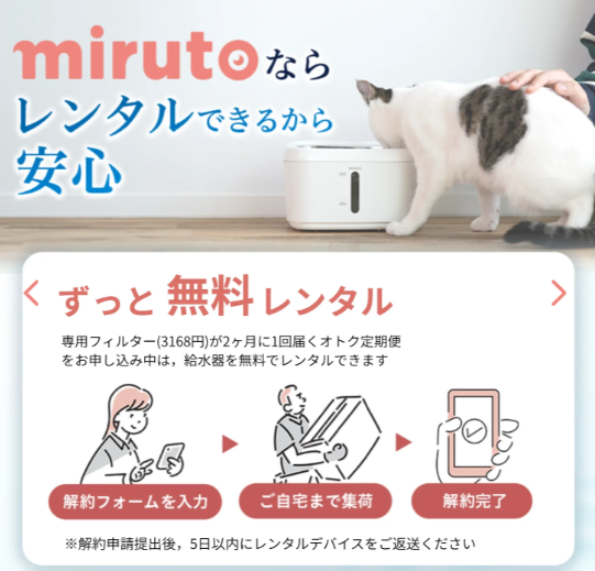mirutoモニタリング自動給水器なら専用フィルター定期便利用で本体を無料でゲットできます!
