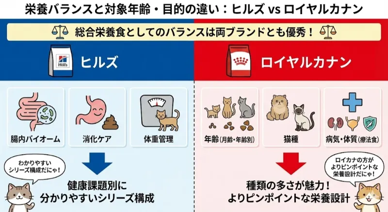 ただし、開発思想や得意分野には違いがあり、猫の年齢や体質によって向き・不向きが分かれます。